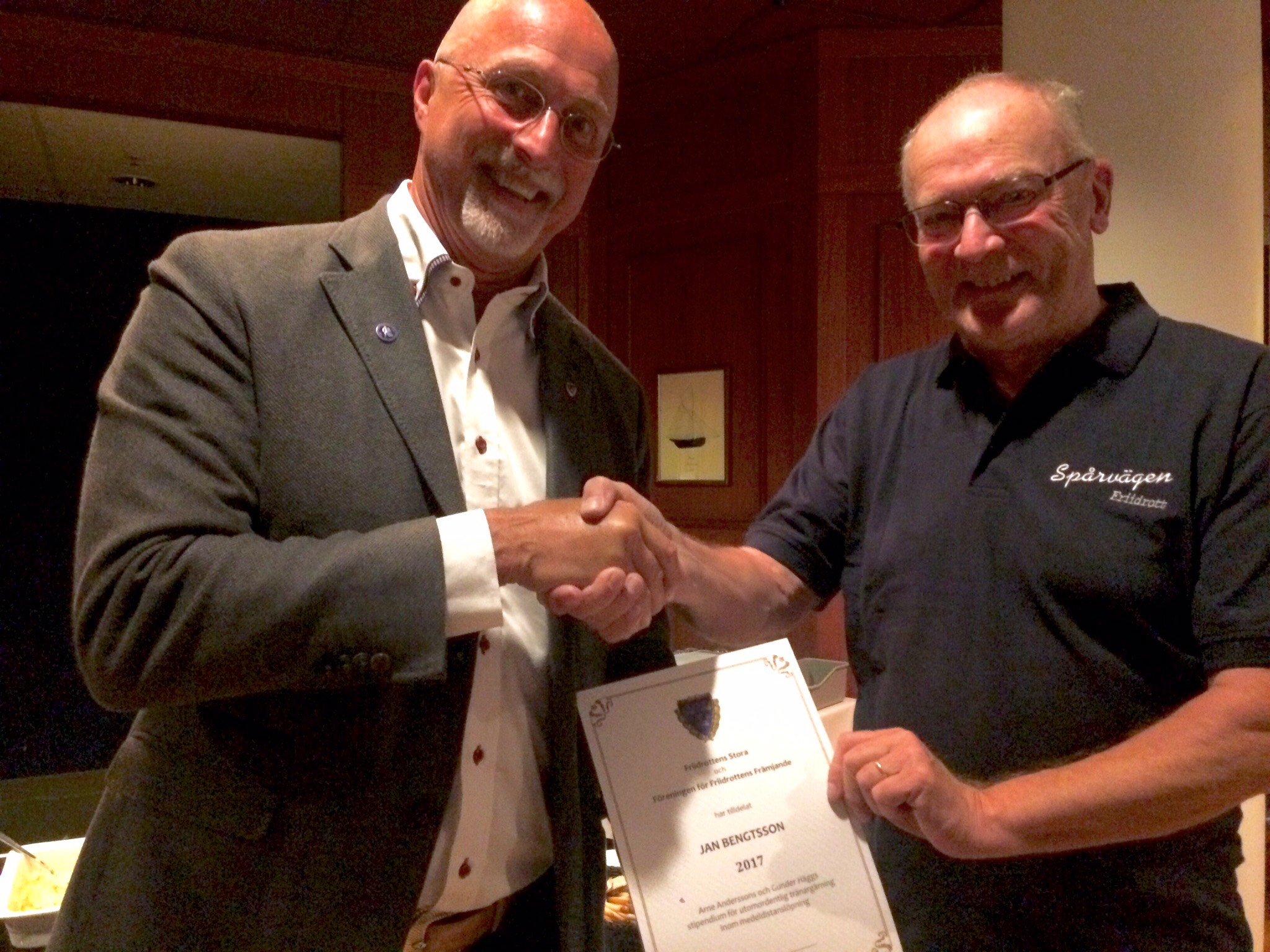 Vid den middag som Friidrottens Stora arrangerade vid SM-tävlingarna i Helsingborg överlämnades diplom och check till Janne av ordförande Rajne Söderberg, som dessutom uttryckte föreningens erkänsla för det kvalitetsarbete som Janne utför och utfört under många år.